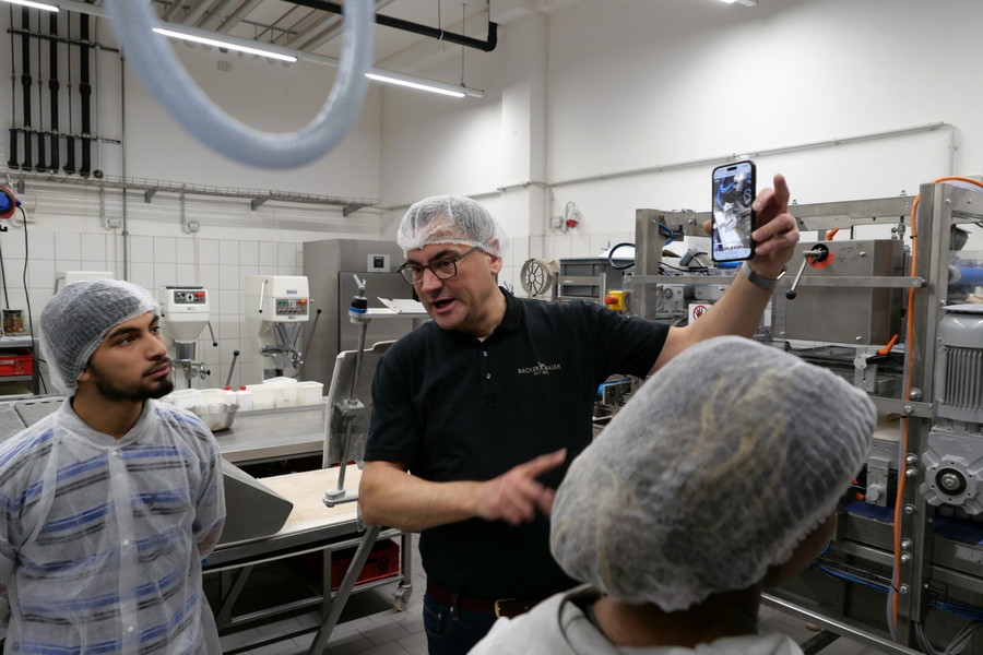 Nach der herzlichen Begrüßung durch Corinna Gonzales von der Ausbildungsabteilung und einem gemeinsamen Brezel-Frühstück erfuhren die Teilnehmer*innen zunächst Allerlei über die Firmengeschichte, die Philosophie und das Backwaren-Sortiment des in Herrenberg ansässigen Traditionsbetriebes. Im Zentrum der Erkundung standen die Informationen über die vielfältigen Möglichkeiten zum Ausbildungsstart im September 2026. Es werden jeweils mehrere Azubis für die Ausbildung zum*zur Fachverkäufer*in, Konditor*in und zum*zur Bäcker*in gesucht.