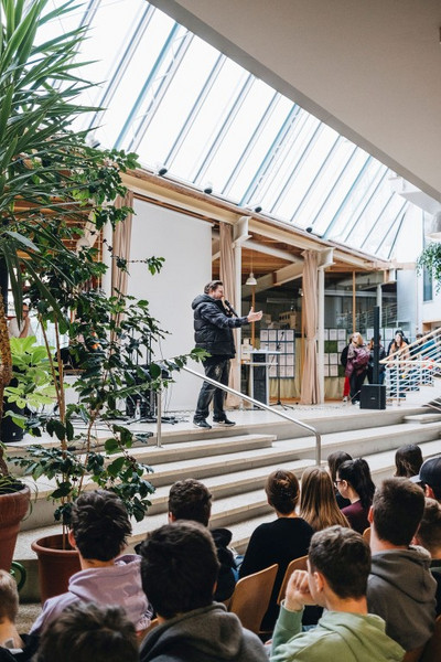 Der Digital Detox Day begann gemeinsam für die gesamte Schulgemeinschaft im Foyer mit einer Vorführung des Improvisationstheaters „Theatersport Tübingen“ und einer musikalischen Überleitung in die Workshop-Phase. Über 500 Schüler*innen nahmen an dem Tag teil und konnten an insgesamt 38 verschiedenen Workshops teilnehmen. Es gab Workshops zur Medienkompetenz (Physical Media Workshop, Zivilcourage im Netz, Sicher im Netz, Elektroschrott Exit Game, Umgang mit Schönheitsidealen im Netz), zu Bewegungsangeboten (Tischtennis, Volleyball, Selbstverteidigung, Fitness Bootcamp, Pound Fitness, Ballett, Kampfsport und Selbstverteidigung), zu Kreativem (Improtheater, Karaoke, Erste Hilfe, Gemeinsam Spielen, Aquarell malen, Häkeln, Perlenarmbändern, Bügelperlen, Linolschnitt, Graffiti-Workshop, Töpferworkshop, Sonnenfänger herstellen, Mandala malen) und zu sonstigen Angeboten (Wahrnehmungs-Spaziergang, Walk and Talk, Stöbern in der Stadtbibliothek Herrenberg, Fantasiereise, Pasta und Salsa kochen, Tomaten und sonstiges säen, gemeinsam spielen).