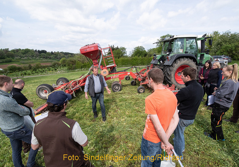 Danach wurde von Heiderose Ebser, von der Landwirtschaftlichen Berufsschule der Hilde-Domin-Schule Herrenberg, die Gruppeneinteilung aufgerufen. Später im Gespräch verriet Thomas Rott, dass er 2010 den Vorschlag für einen Praxistag, einen Grünlandtag, gemacht habe.