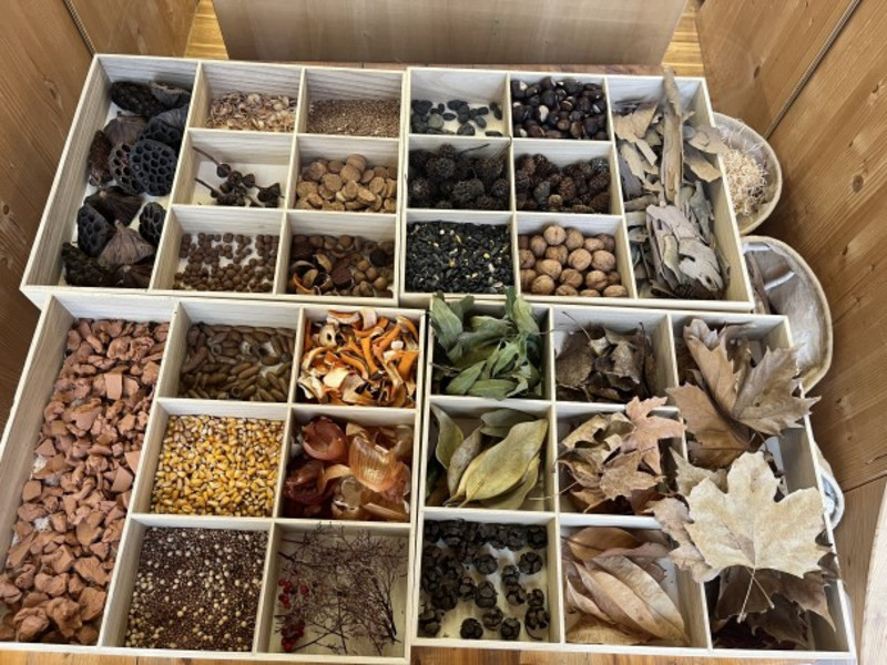 Ein weiterer Programmpunkt war ein Workshop, in dem die Lehrkräfte selbst mit Naturmaterialien arbeiteten und so die „100 Sprachen des Kindes“ – ein zentrales Konzept der Reggio-Pädagogik – praktisch erfahren konnten. Spätestens hier wurde deutlich: Lernen kann nicht nur theoretisch verstanden, sondern auch ganz unmittelbar erlebt werden.