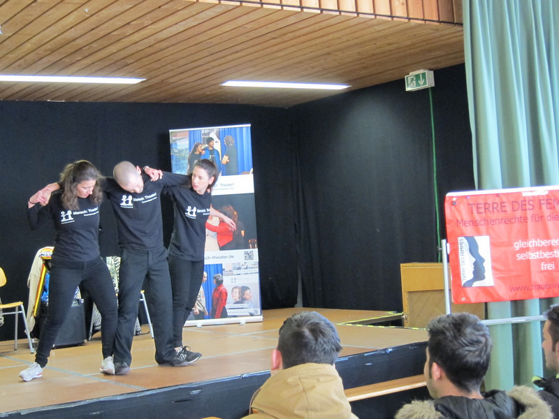 Das Projekt ist eine Kooperation der Frauenrechtsorganisation TERRE DES FEMMES e.V., der Beratungsstelle YASEMIN und der mobilen Theaterbühne „Mensch: Theater!“ und wird vom Ministerium für Soziales und Integration Baden-Württemberg finanziert. Die Schüler und Schülerinnen setzten sich schon während des Stücks mit dem Thema Gleichberechtigung, Gewalt im Namen der Ehre sowie Vorurteile auseinander und vertieften das Gesehene anschließend in theaterpädagogischen Workshops. Die verschiedenen Szenen, die alle aus dem Alltag einer geflüchteten Familie erzählten, wurden vom Ensemble kurz gespielt und danach direkt mit den Jugendlichen besprochen. So konnten sie in das Geschehen eingreifen und Handlungsvorschläge machen, wie eine Situation entschärft oder zu einem anderen Ende kommen könnte.
