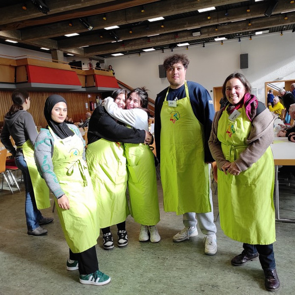 Dieses Jahr im katholischen Gemeindehaus wurden Gäste begrüßt, Mahlzeiten und Getränke serviert, Teller abgetragen und gespült … 220 Essen und 28 Kuchen, viele Kaffee-, Tee- und Saftgläser wurden pro Tag verspeist. Einige der Auszubildenden erzählten, dass sie gerührt und erfüllt waren von den Begegnungen mit den Gästen, aber auch von der engagierten Zusammenarbeit mit den freundlichen Ehrenamtlichen, die die Vesperkirche in Herrenberg nun schon zum vierten Mal auf die Beine stellten. Danke, dass ihr mitgearbeitet habt! Und danke an alle anderen Schüler*innen und Kolleg*innen der Hilde, die „einfach so“ zu Gast da waren! Schön, dass ihr da wart!